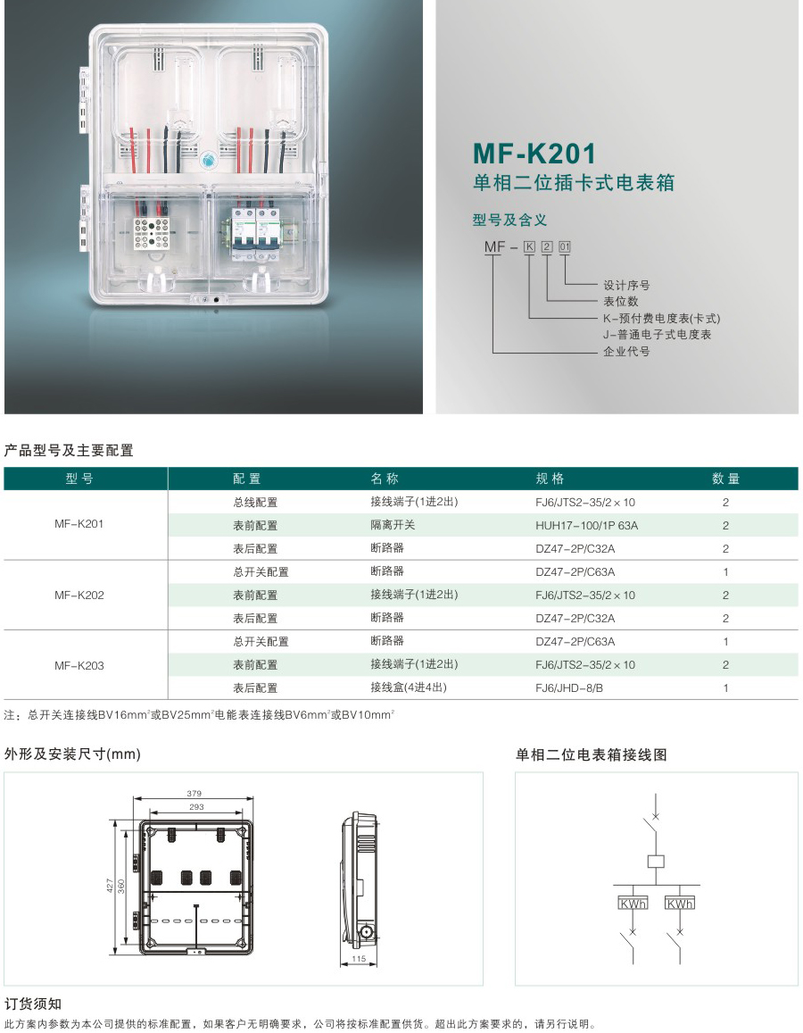 MF-K201 單相二位插卡式電表箱