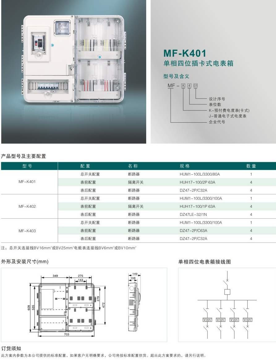 MF-K401D 單相四位插卡式電表箱