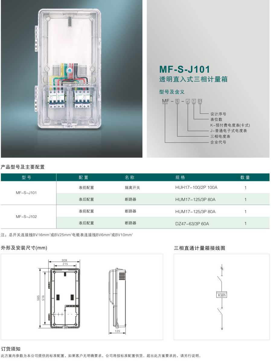 MF-S-J101 透明直入式三相計量箱
