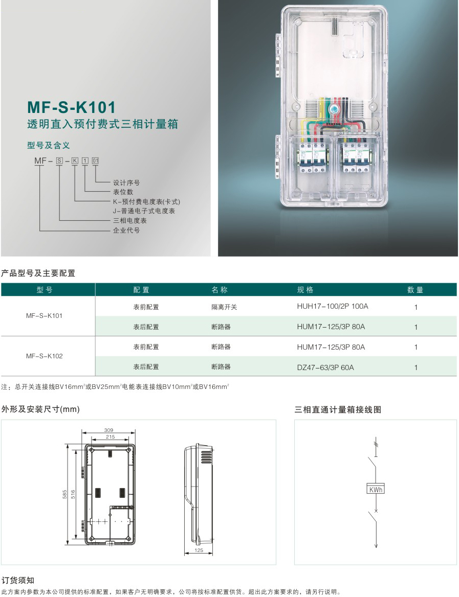MF-S-K101FJ 透明直入預付費式三相計量箱