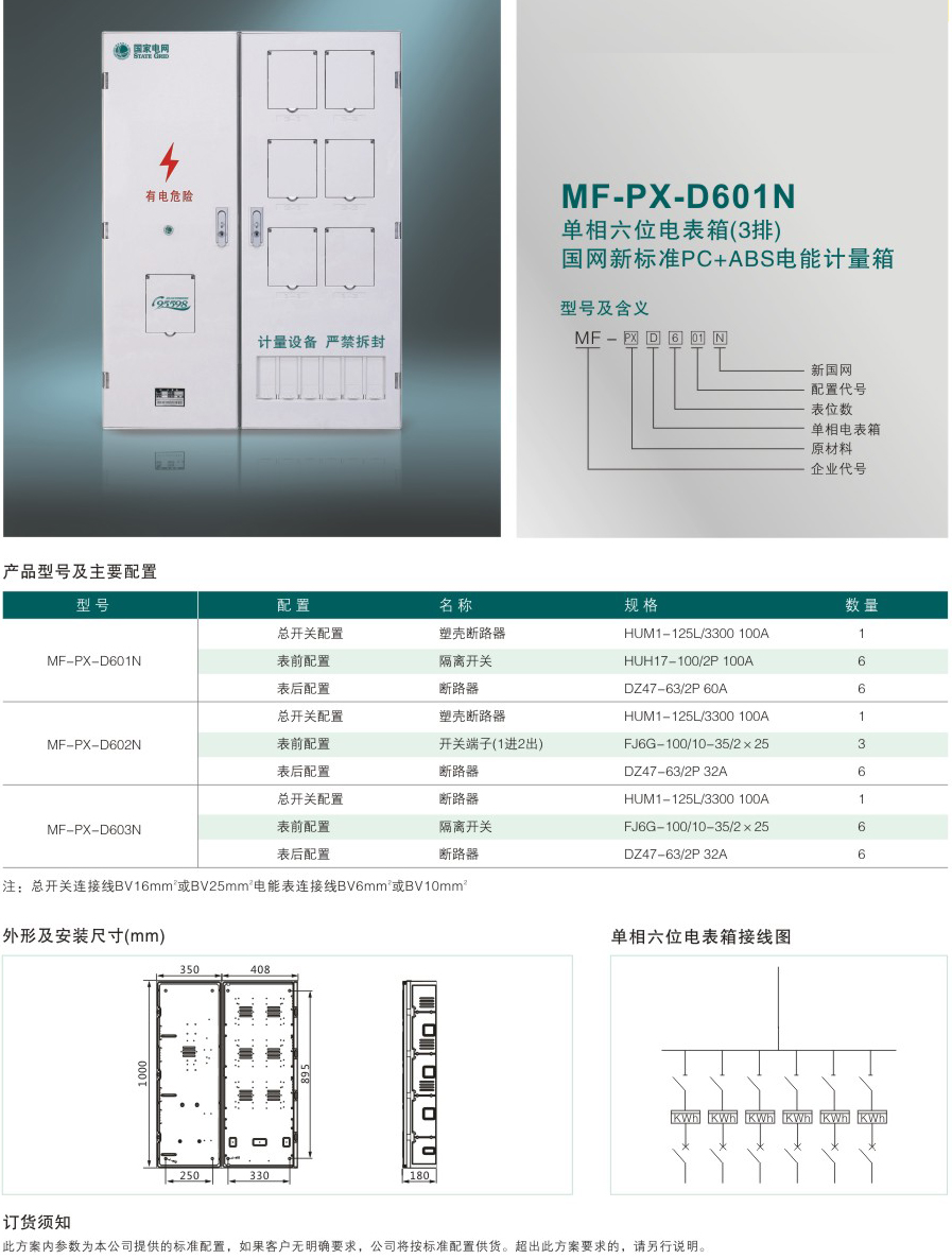 MF-PX-D601N 單相六位電表箱(3排)