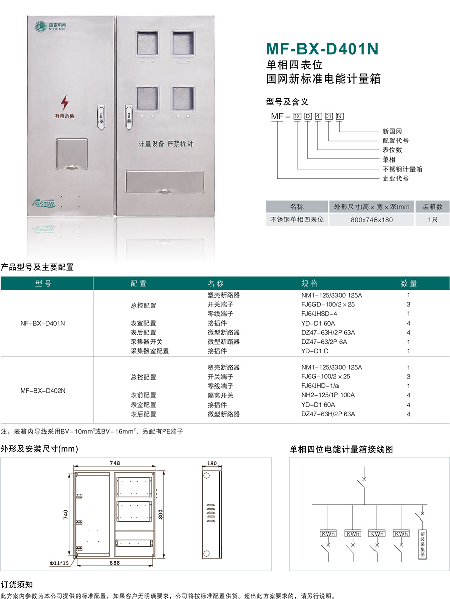MF-BX-D401N單相四表位國網新標準電能計量箱