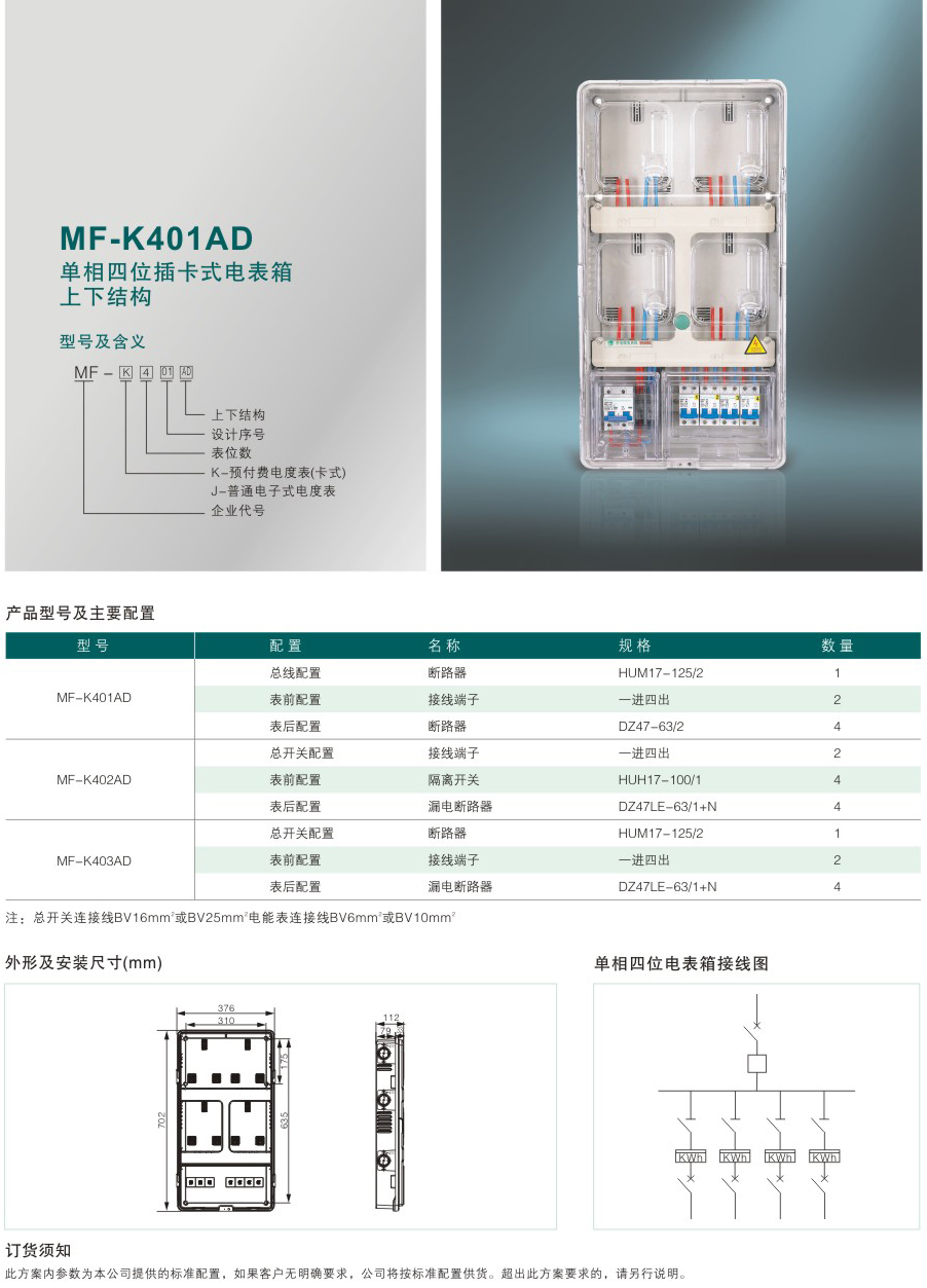 MF-K401AD 單相四位插卡式電表箱上下結(jié)構(gòu)