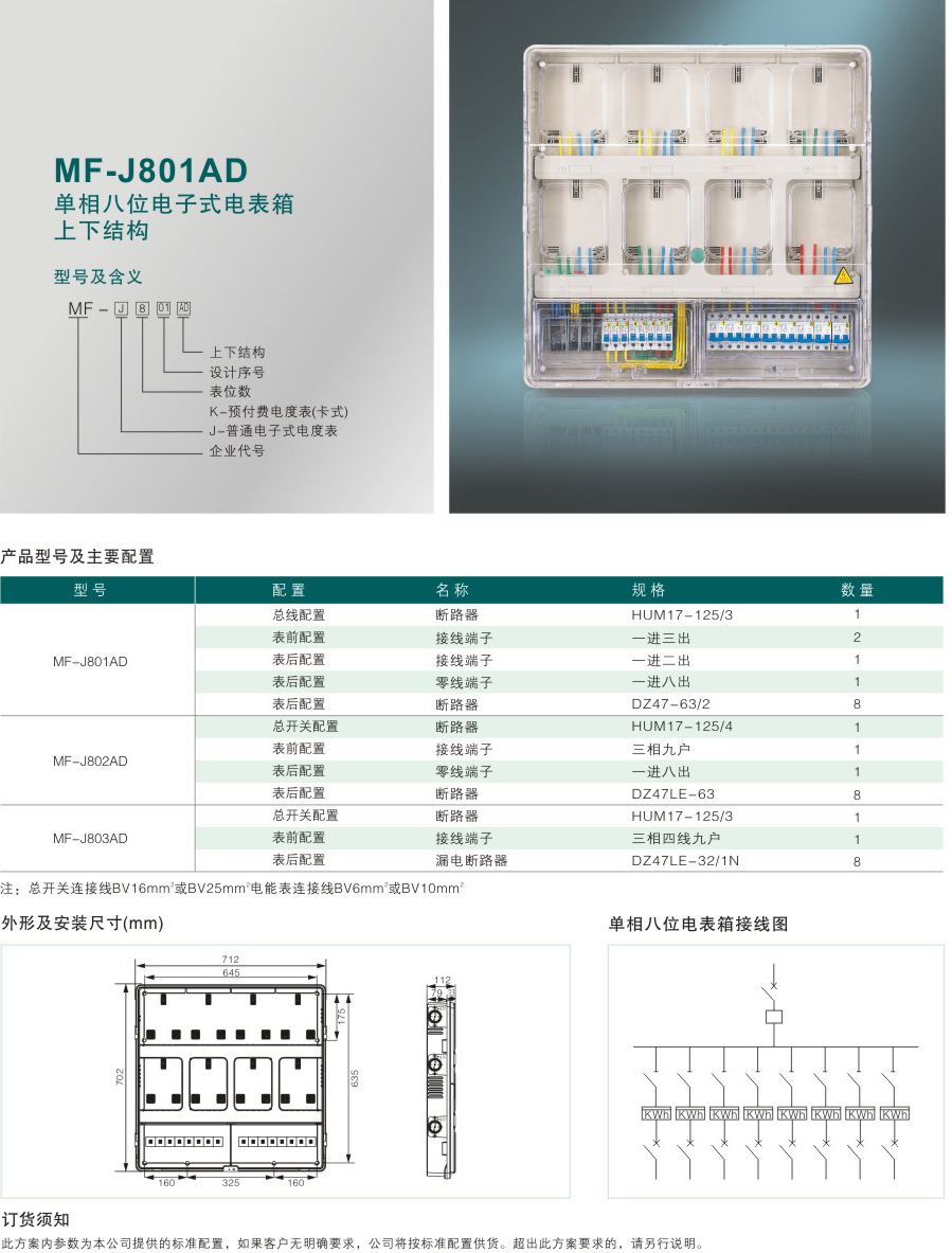 MF-K801AD 單相八位插卡式電表箱上下結構
